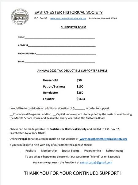 Print and mail the above form if you want to become a supporting member of the Eastchester Historical Society.